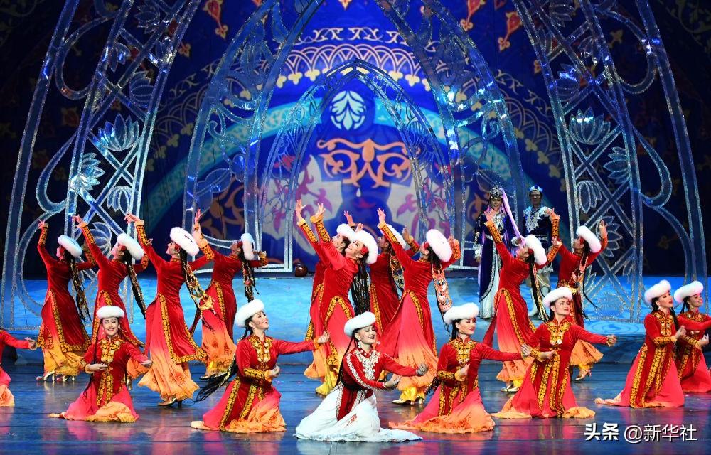 在新疆木卡姆藝術(shù)團劇場,演員在表演《木卡姆印象》(2017年8月3日攝)。新華社記者 王菲 攝